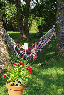 Le Grangé est un havre de paix, au milieu des champs, où il est bon d’abuser des hamacs en écoutant les oiseaux….
